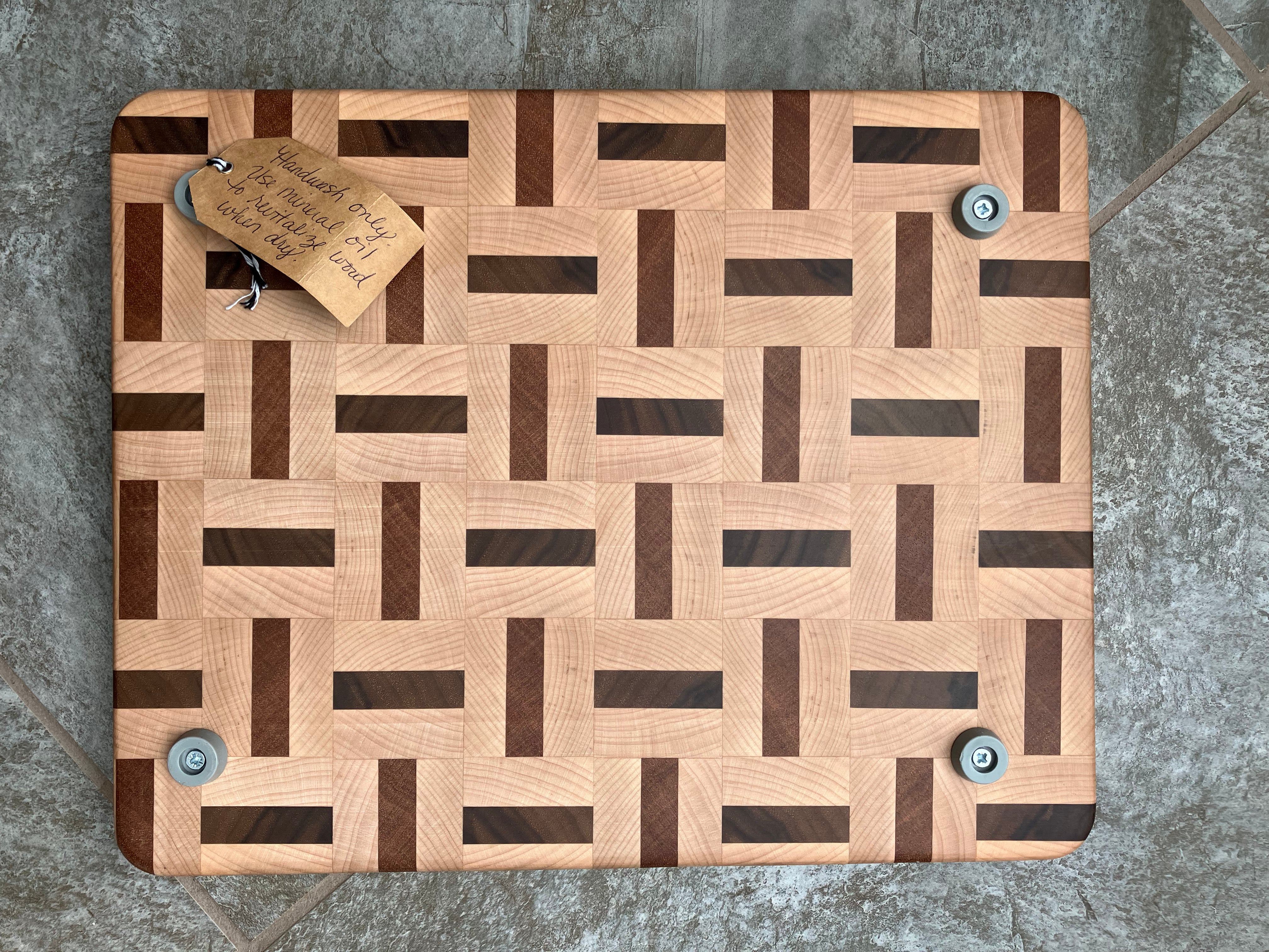 Care instructions: Never put your cutting board in the dishwasher as the high temperatures and moisture can cause the glue in your cutting board to come undone. To safely wash your board we recommend cleaning with cold or lukewarm water and light dish soap. When the wood starts to appear dry the maker suggest to use Howard Clear food grade mineral oil interior butcher block oil to bring the lustre back to the wood. Enjoy!