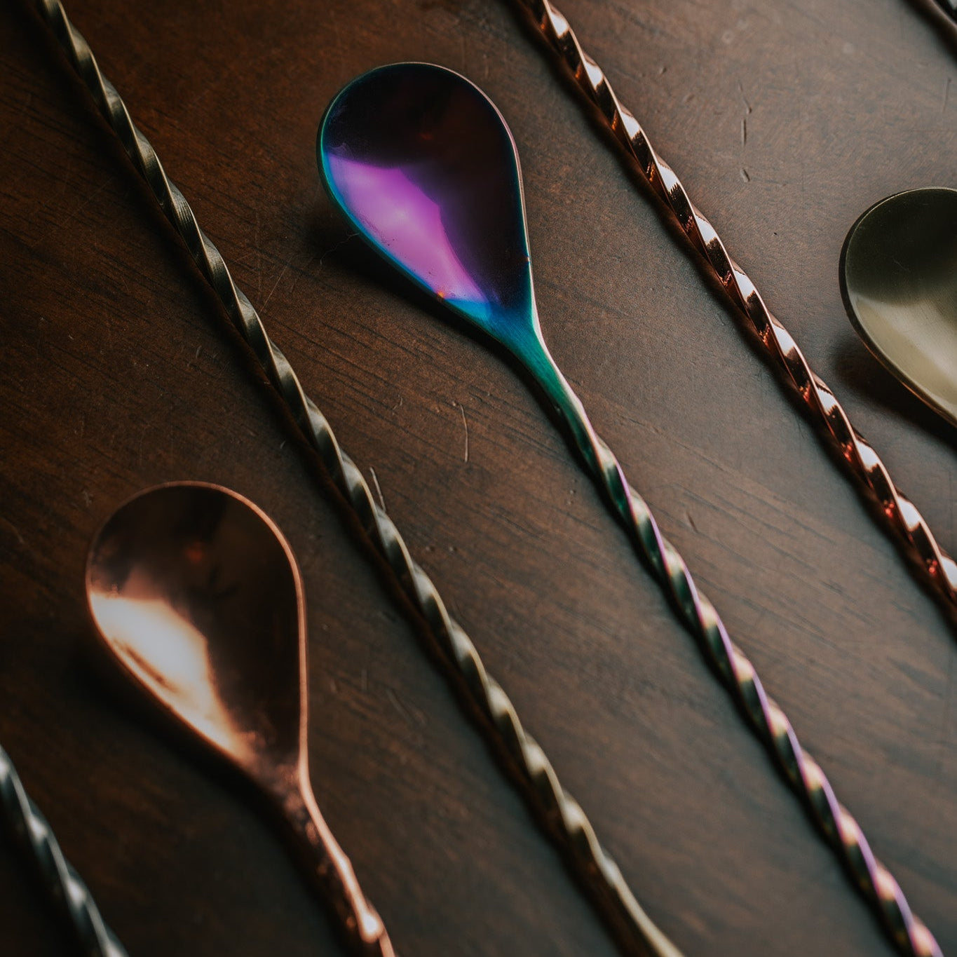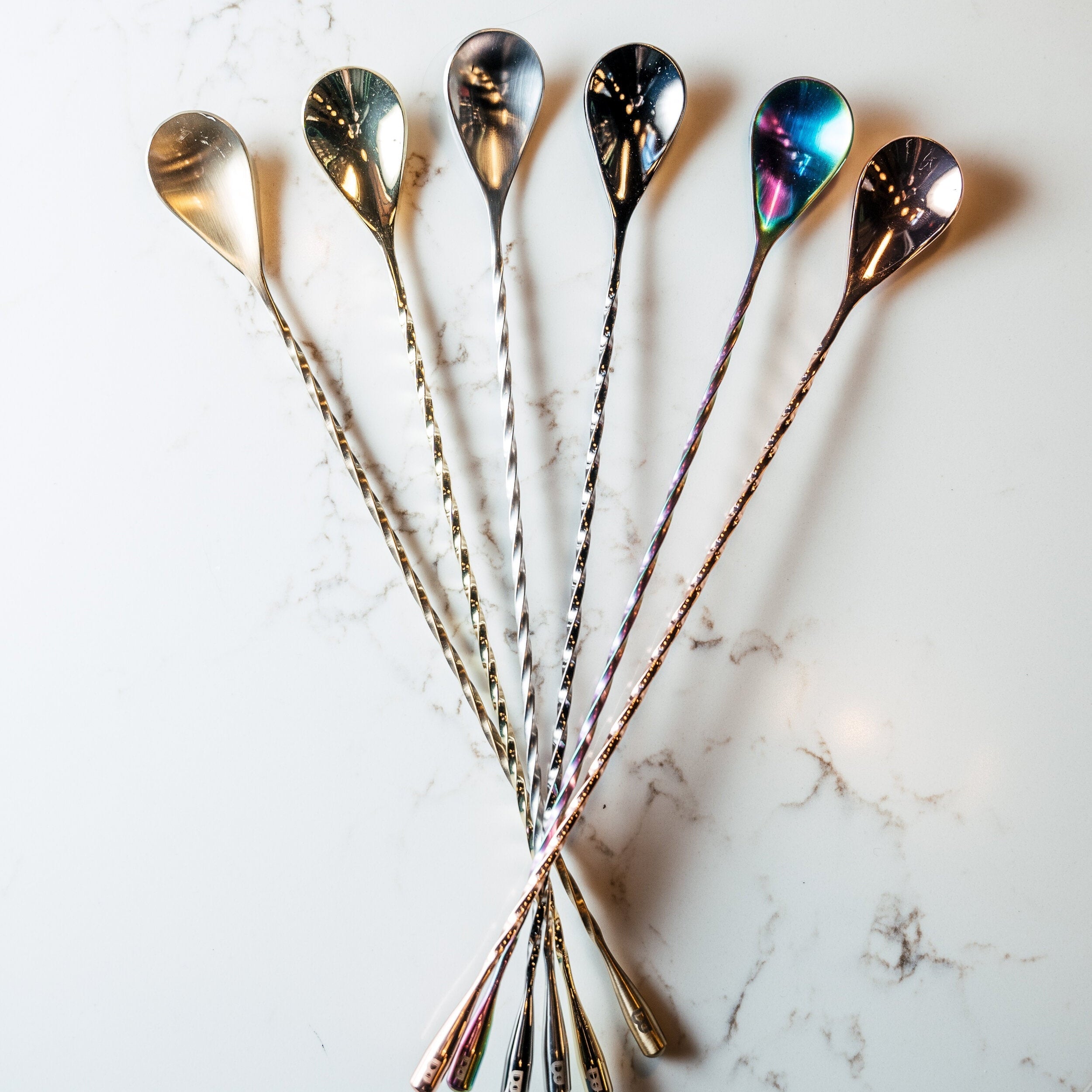 The Teardrop barspoon is a favorite among many bartenders. Its twisted center allows for grip, while the signature weighted end offers a nice counter balance while stirring your cocktail. This spoon is a workhorse of the industry and is beautiful on the professional and home bar top.